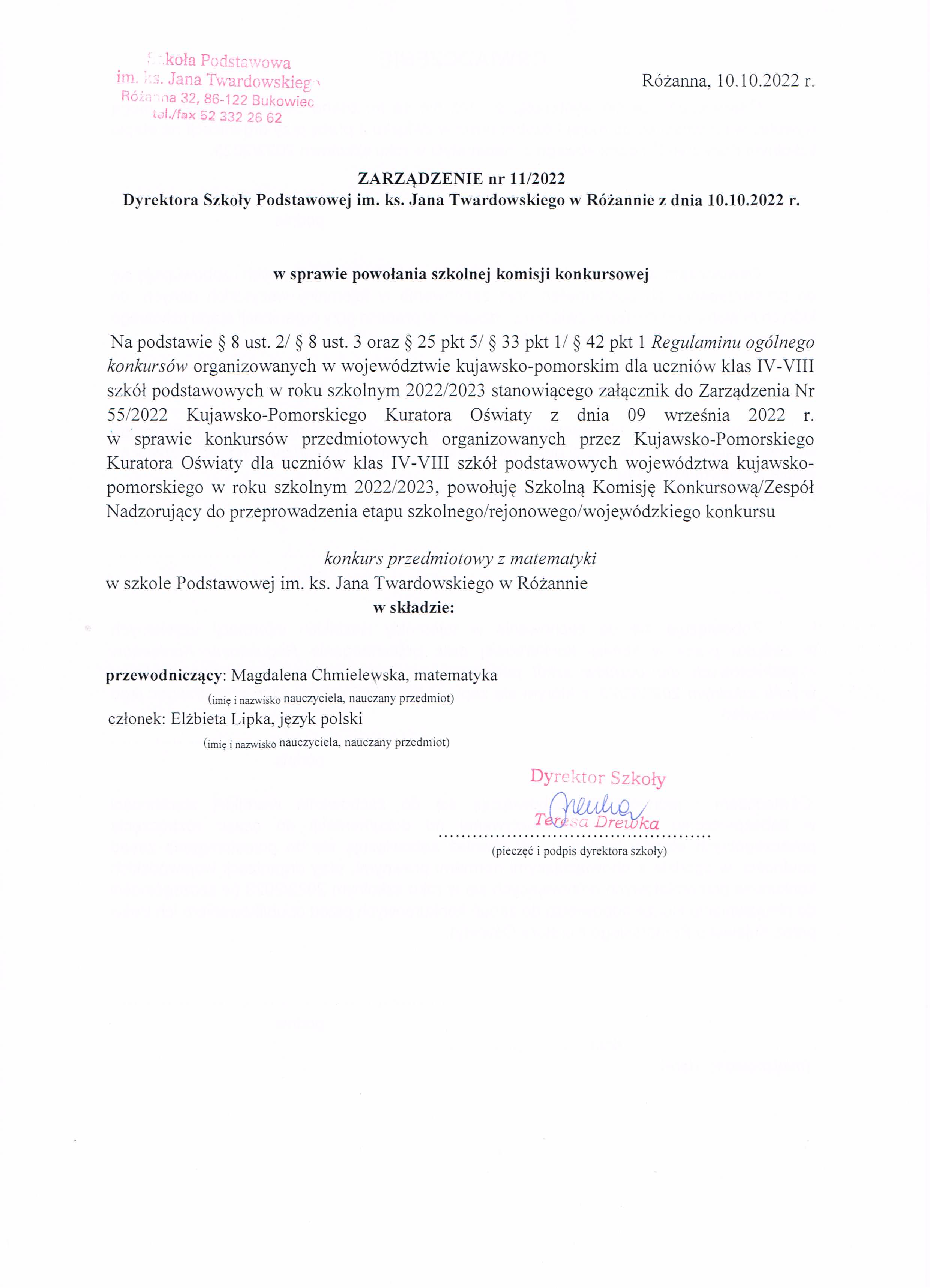 Zarządzenie nr 11/2022 w sprawie powołania komisji konkursowej